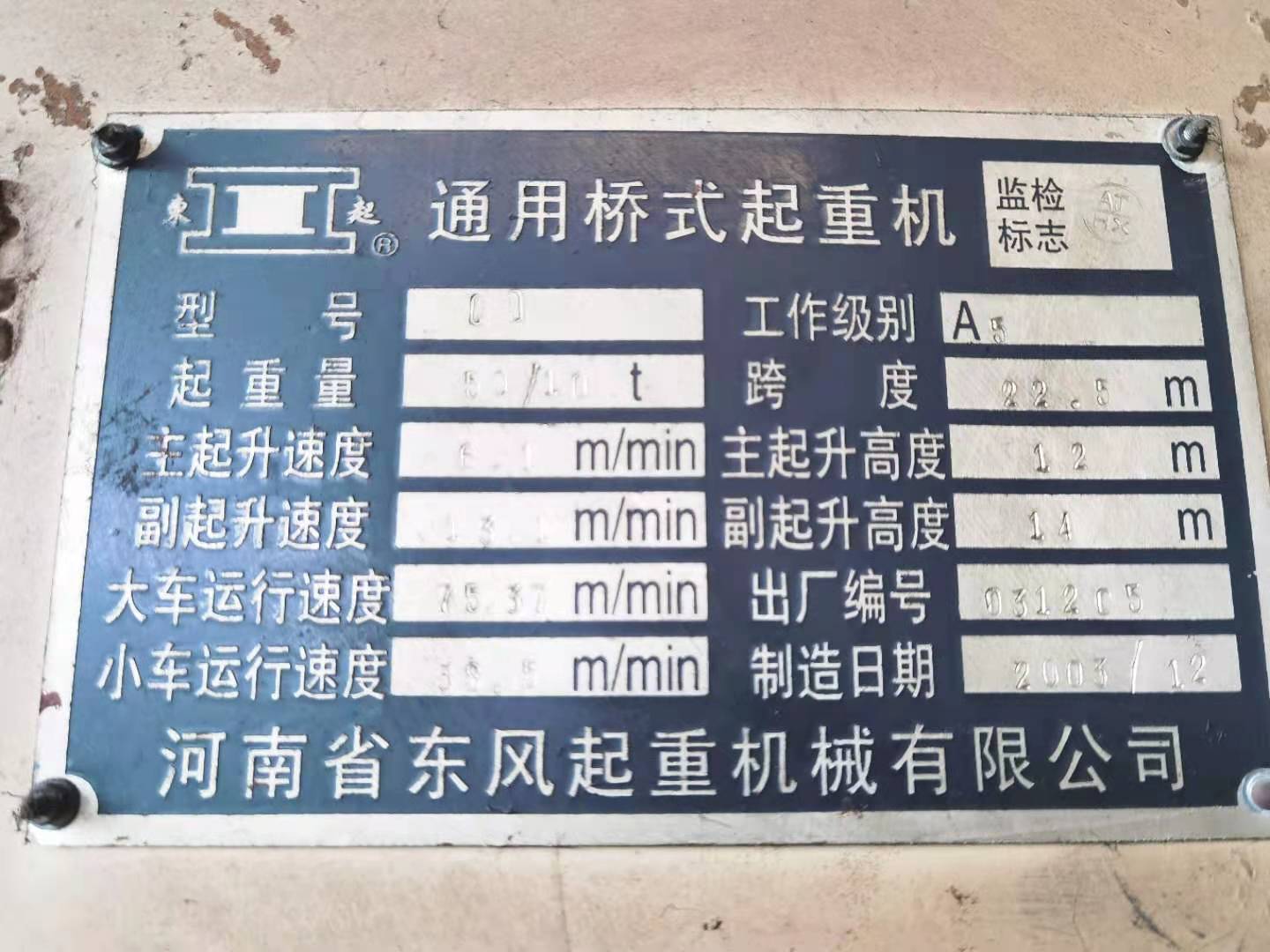 出售二手QD32/5吨22.5米天车