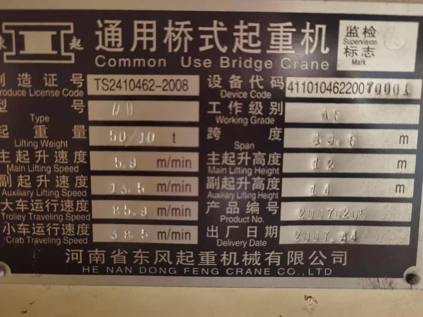 二手QD50/10吨19.5米22.5米天车