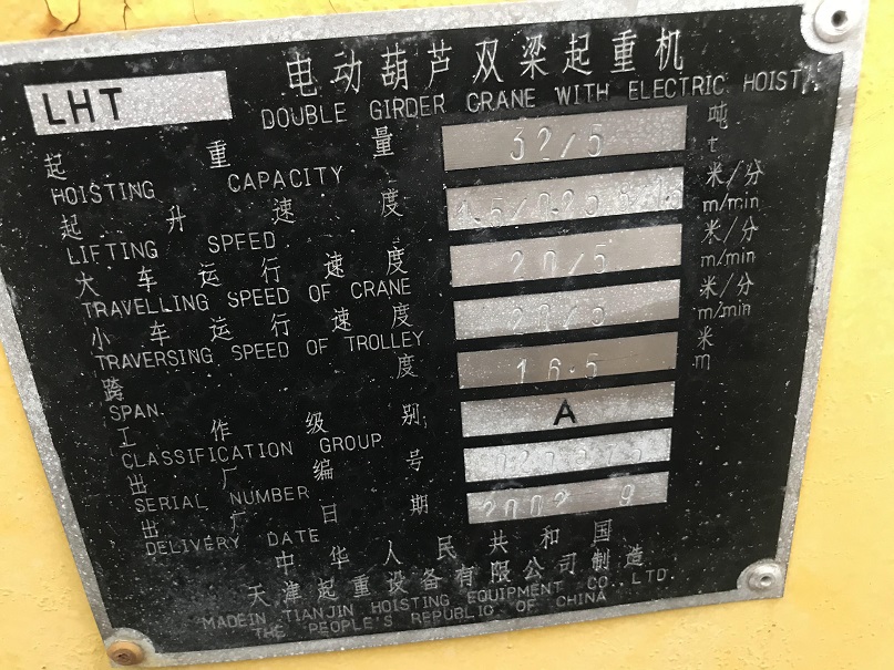 二手LH32/5吨跨度16.5米葫芦双梁行车,在位九成新,欢迎光临选购。