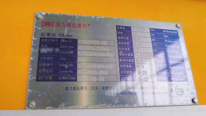 QD50/10吨 75/20吨 80/20吨各一台 跨度34米桥式行车