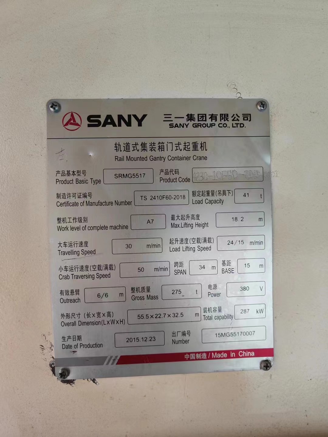 出售集装箱龙门吊 41吨 跨度34米 三一重工生产